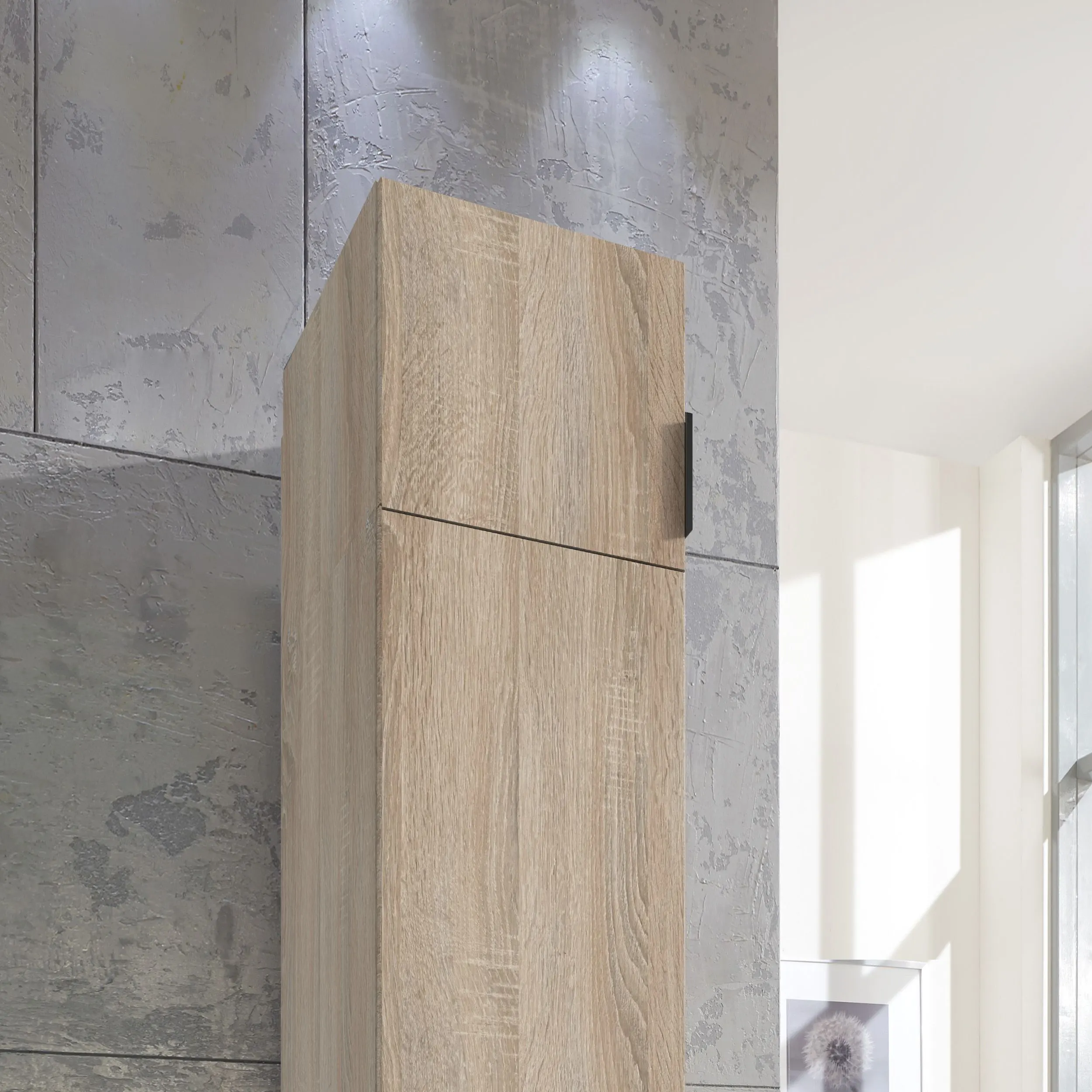 Combina con el ARMARIO 30 X 185 X 54 CM CON 1 PUERTA Y 4 BANDEJAS EXTRAÍBLES en cualquiera de sus acabados.